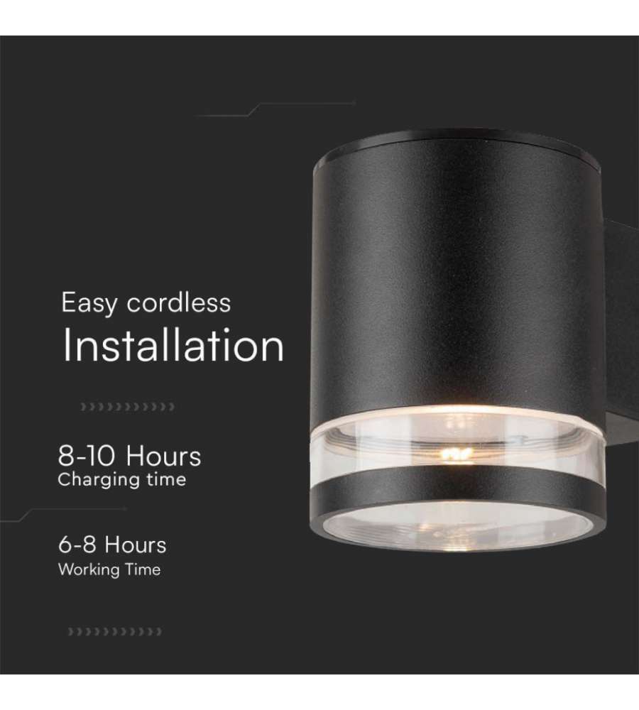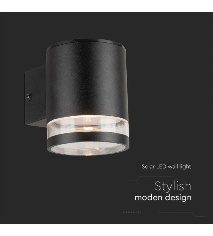 V-TAC Lampada LED da Giardino Cilindrica con Pannello solare e Sensore di Movimento a Microonde 1W Corpo Nero 121*90*112.5mm 3000K IP44