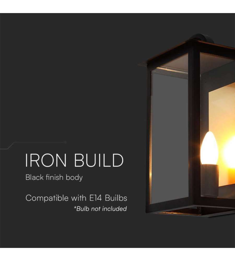V-TAC Illuminazione da giardino Lampada LED da Muro Lanterna 200*168*350mm Portalampada E14 (Nero IP65Volt: