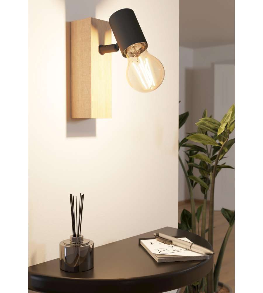 Questo faretto combina un design elegante con materiali di alta qualità, rendendolo ideale per illuminare e decorare qualsiasi ambiente interno. La struttura in legno aggiunge un tocco naturale, mentre la finitura nera conferisce modernità. Perfetto per soggiorni, camere da letto o uffici, offre un'illuminazione efficace e uno stile unico.