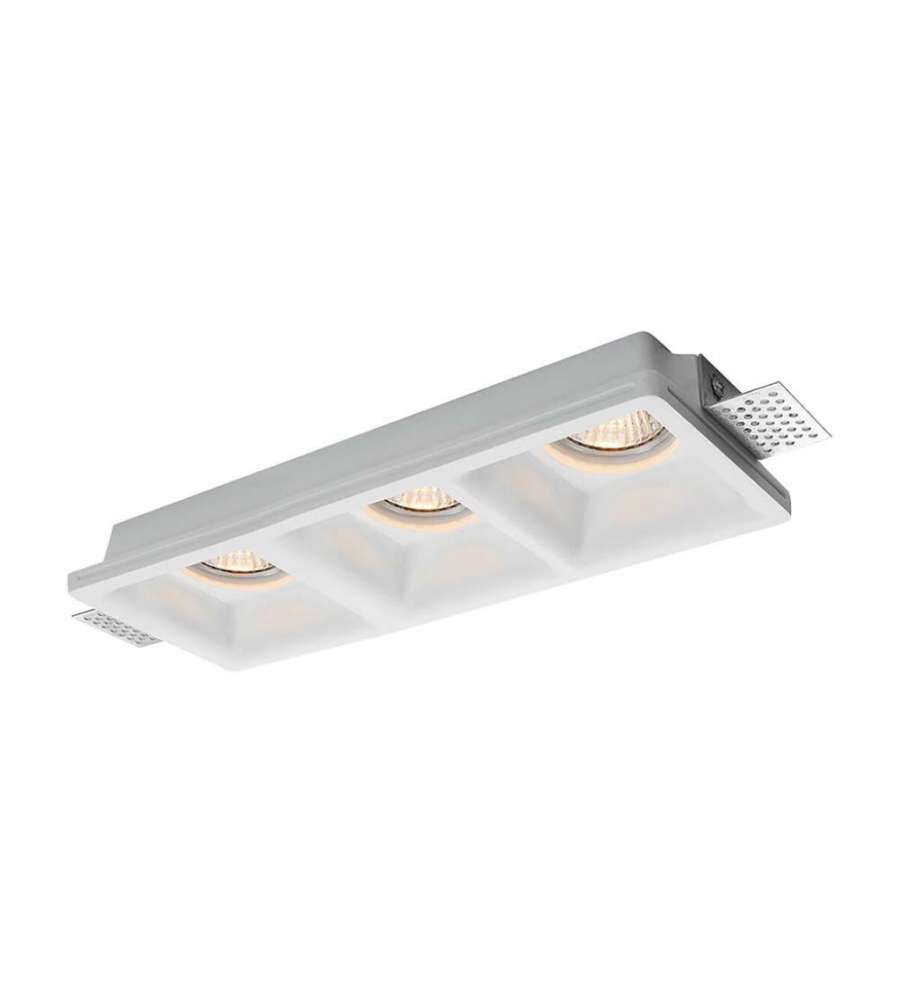Portafaretto LED da Incasso Rettangolare 3*GU10 e GU10 Corpo in Gesso Bianco