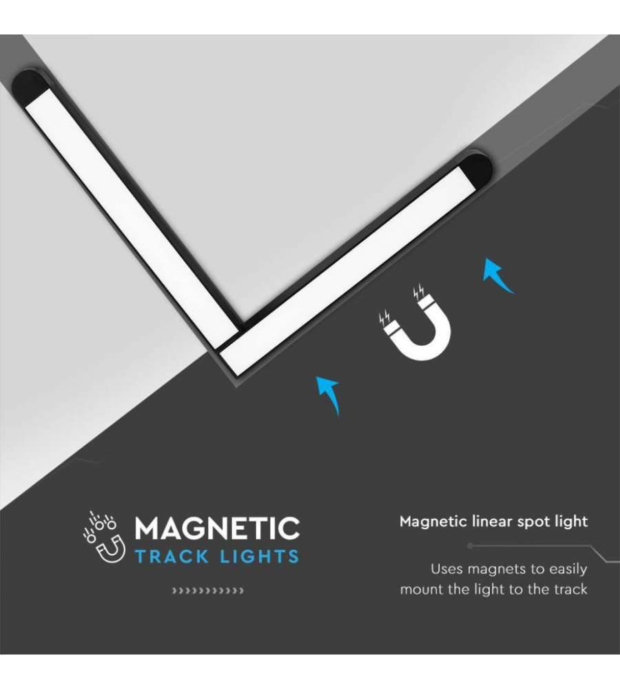 V-TAC Faretto LED da Binario Magnetico 25W a forma di L Colore Nero 4000K