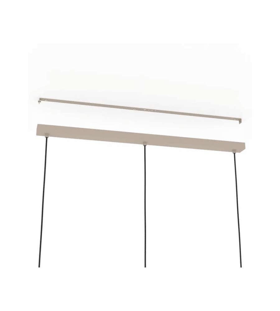 Lampada a sospensione con 3 luci, paralumi rotondi in metallo color sabbia, cavi in tessuto nero e rosone rettangolare. Design nordico ideale per soggiorno e sala da pranzo, crea un affascinante gioco di luci e ombre. Attacco E27 (lampadine non incluTipo attacco: