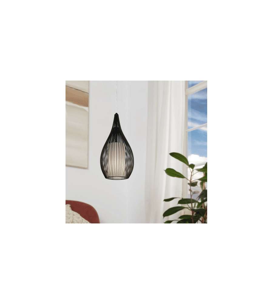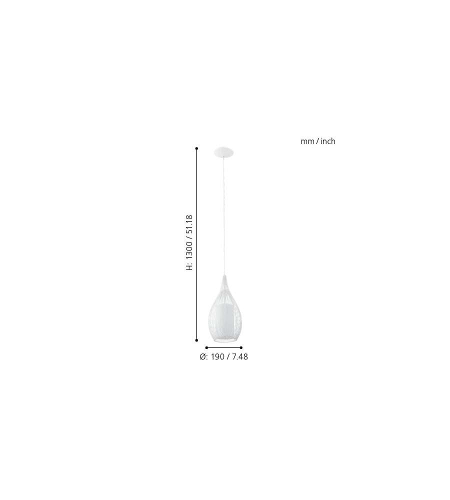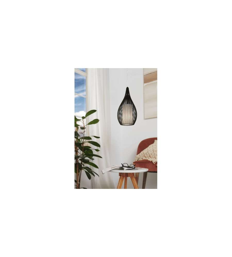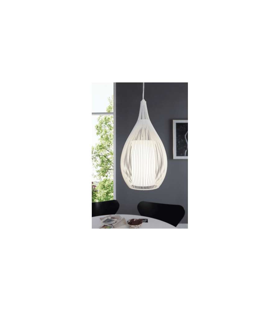 Descrizione: Lampadario a sospensione RAZONI di Eglo, design minimalista in metallo e vetro satinato. Compatibile con lampadine E27 fino a 60W, offre un'illuminazione elegante per ogni ambiente. Altezza 130 cm, diametro 19 cm.