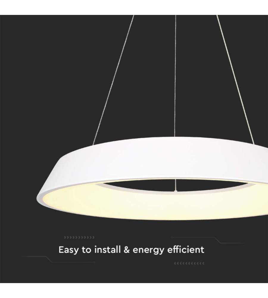V-TAC Lampadari e Pendenti Lampadario LED a Sospensione Circolare 48W Dimmerabile TRIAC in Metallo Colore Bianco 3000KLumen: