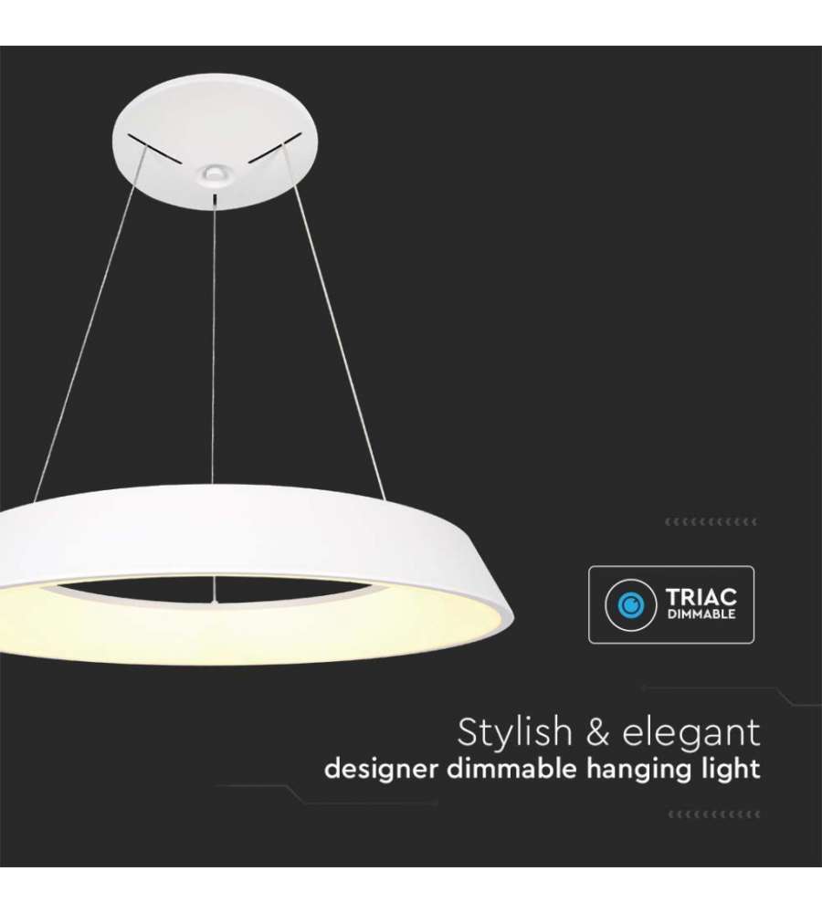 V-TAC Lampadario LED a Sospensione Circolare 48W Dimmerabile TRIAC in Metallo Colore Bianco 3000K