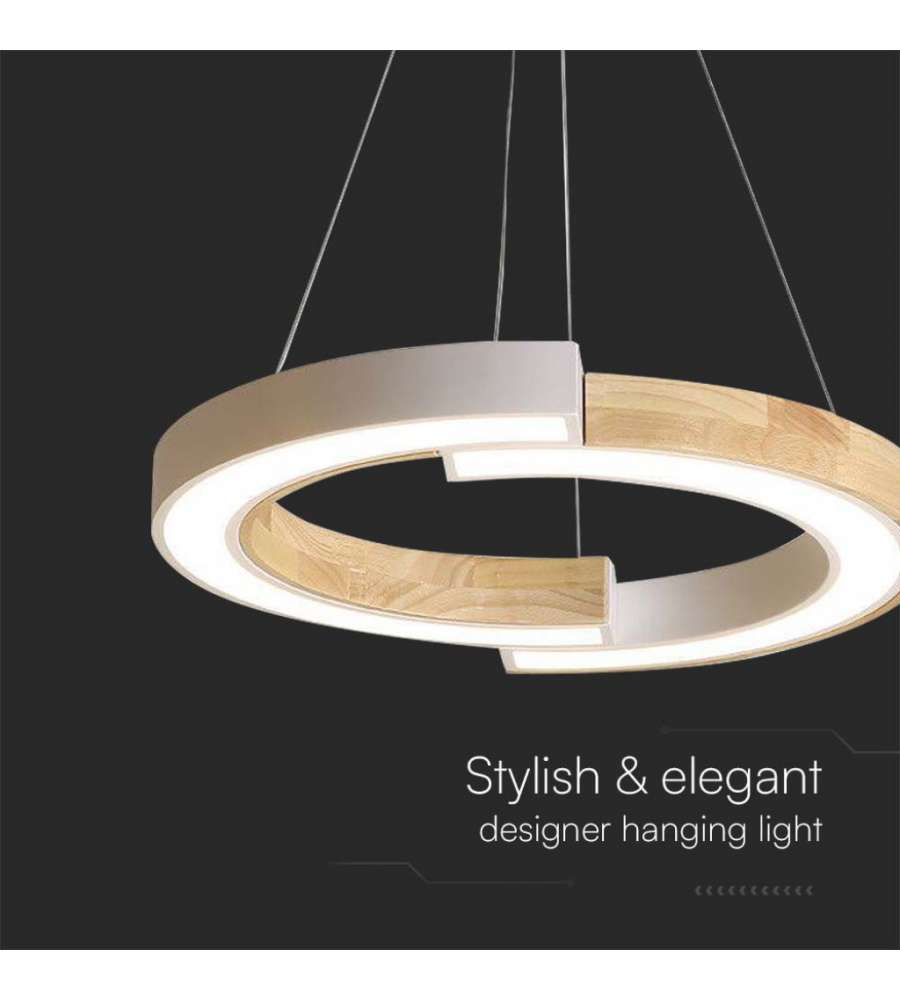 V-TAC Lampadari e Pendenti Lampadario LED a Sospensione con 2 Mezzaluna 32W in Legno Colore Bianco 43*37*112cm 3000KLumen: