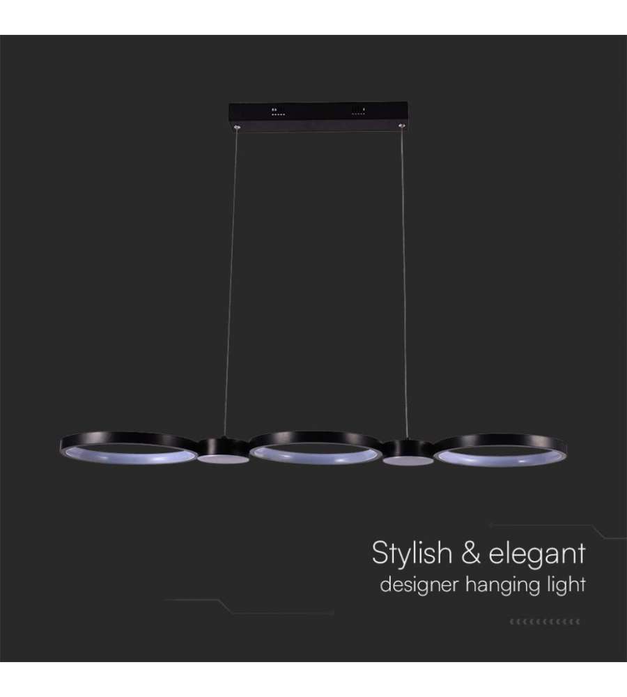 V-TAC Lampadario LED a Sospensione con 3 Cerchi 38W in Metallo Colore Nero 97.4*26*110cm 3000K