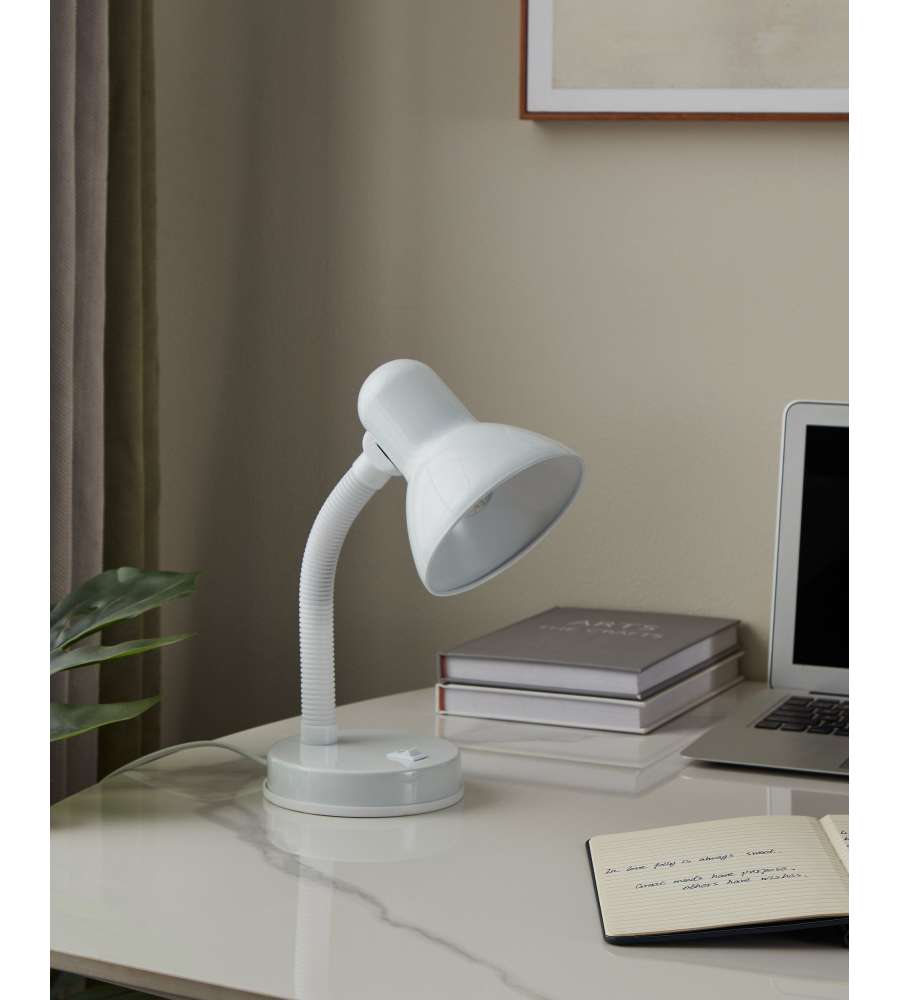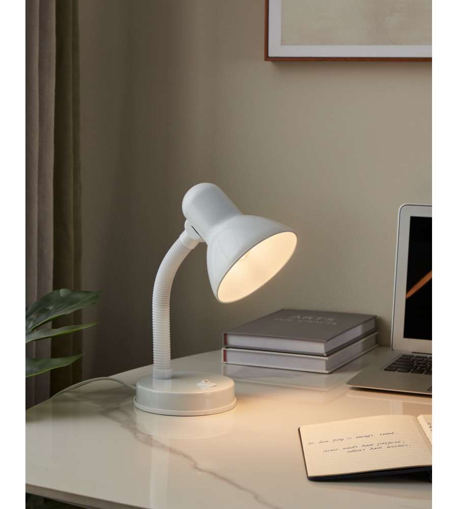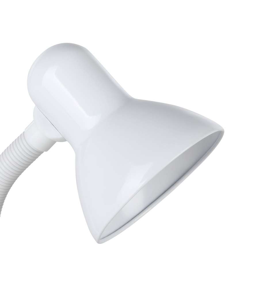 La lampada da scrivania BASIC è realizzata in metallo bianco e composta da un collo mobile bianco in plastica. Grazie all’interno del paralume dello stesso colore e al collo flessibile si potrà illuminare in un batter d’occhio la postazione di lavoro in modo ottimale e mirato. È possibile accendere e spegnere la lampada comodamente tramite l’interruttore a levetta presente alla base della lampada. Questa lampada da scrivania, con il suo design classico, offre un’illuminazione pratica alla postazione di lavoro, che sia in ufficio o lavorando alla scrivania di casa. La lampadina non è inclusa nella consegna. Per questa lampada da tavolo è adatta qualsiasi lampadina con attacco E27.