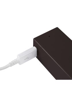 Barra appendiabiti per armadio o cabina armadio con illuminazione LED e sensore di movimento alimentata con un batteria rimovibili che si trova su uno dei supporti laterali nascosta sotto un coperchio, e pu? essere ricaricata da un caricabatterie di cellulare di 5V DC 1A con conettore micro USB tipo B (non compreso) senza necesit? di smontare l'asta appendiabiti. La batteria dispone di un indicatore LED che va da rosso a verde quando la carica ? completata una volta trascorso il periodo di circa 4 ore.