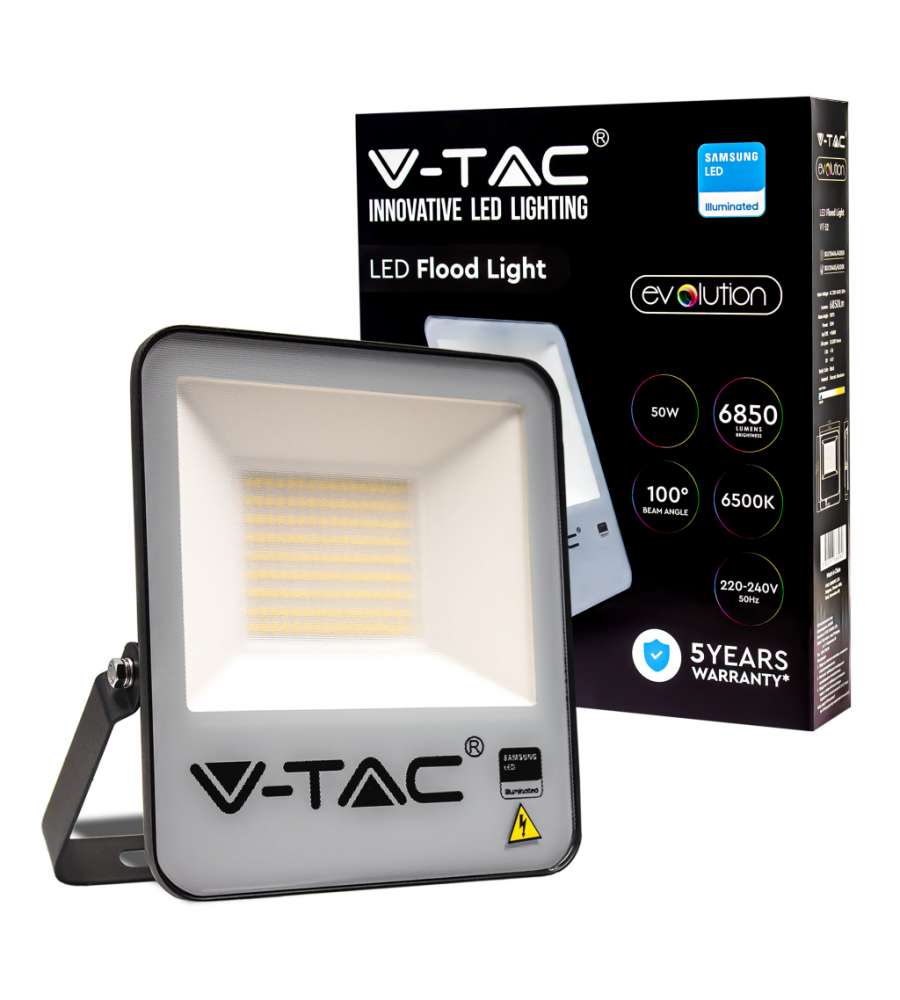 Faro LED SMD Chip Samsung 50W 137LM/W Colore Nero 6500K IP65
