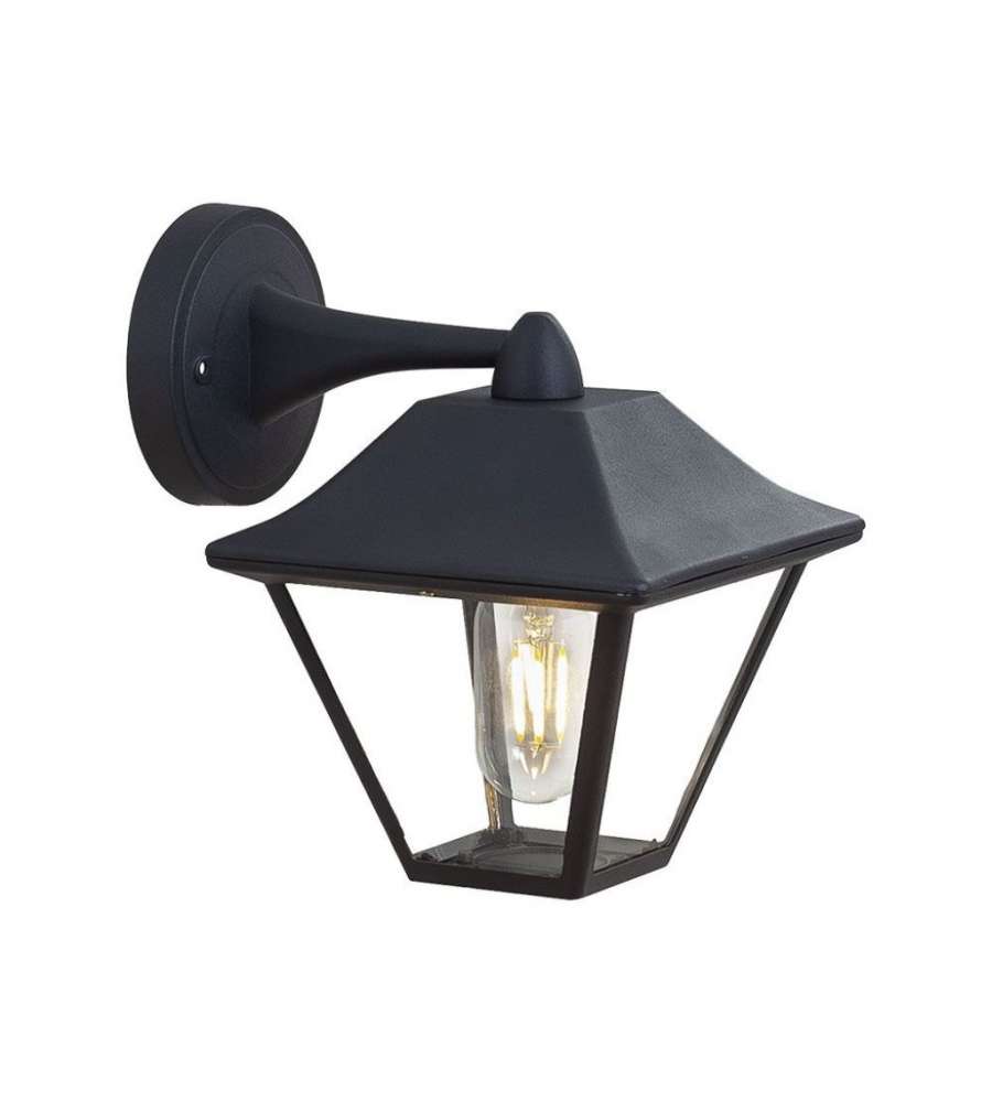 Lampada LED da Muro a Lanterna in Vetro con Portalampada E27 Colore Nero Opaco IP44