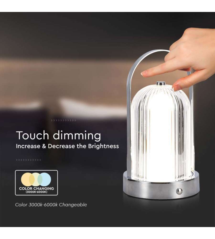 V-TAC Lampada LED da Tavolo 1W 120*190 Colore Cromo Ricaricabile con USB C Touch Dimmerabile 3in1