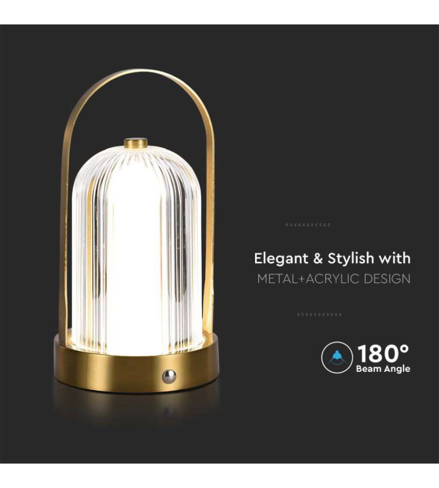 V-TAC Lampada LED da Tavolo 1W 120*190 Colore Oro francese Ricaricabile con USB C Touch Dimmerabile 3in1