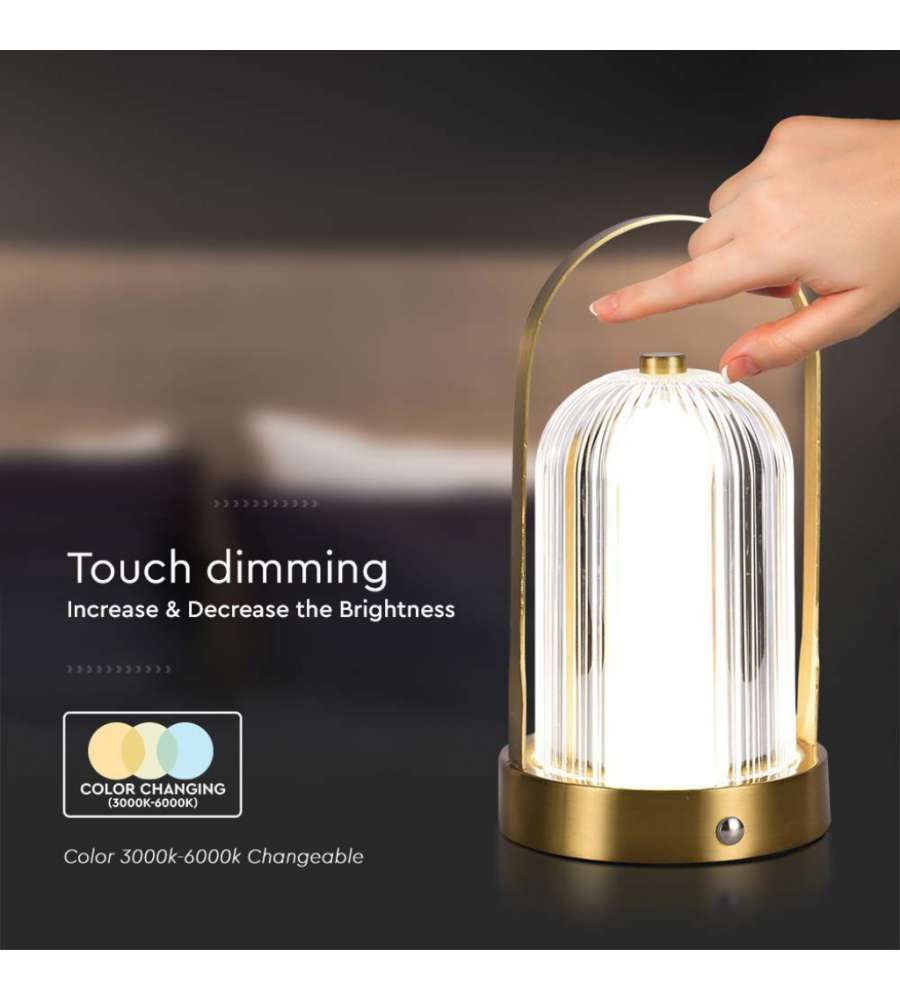 V-TAC Lampade da Tavolo Lampada LED da Tavolo 1W 120*190 Colore Oro francese Ricaricabile con USB C Touch Dimmerabile 3in1Lumen: