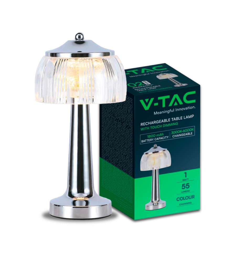 V-TAC Lampada LED da Tavolo 1W 13.5*26.5 Colore Cromo Ricaricabile con USB C Touch Dimmerabile 3in1