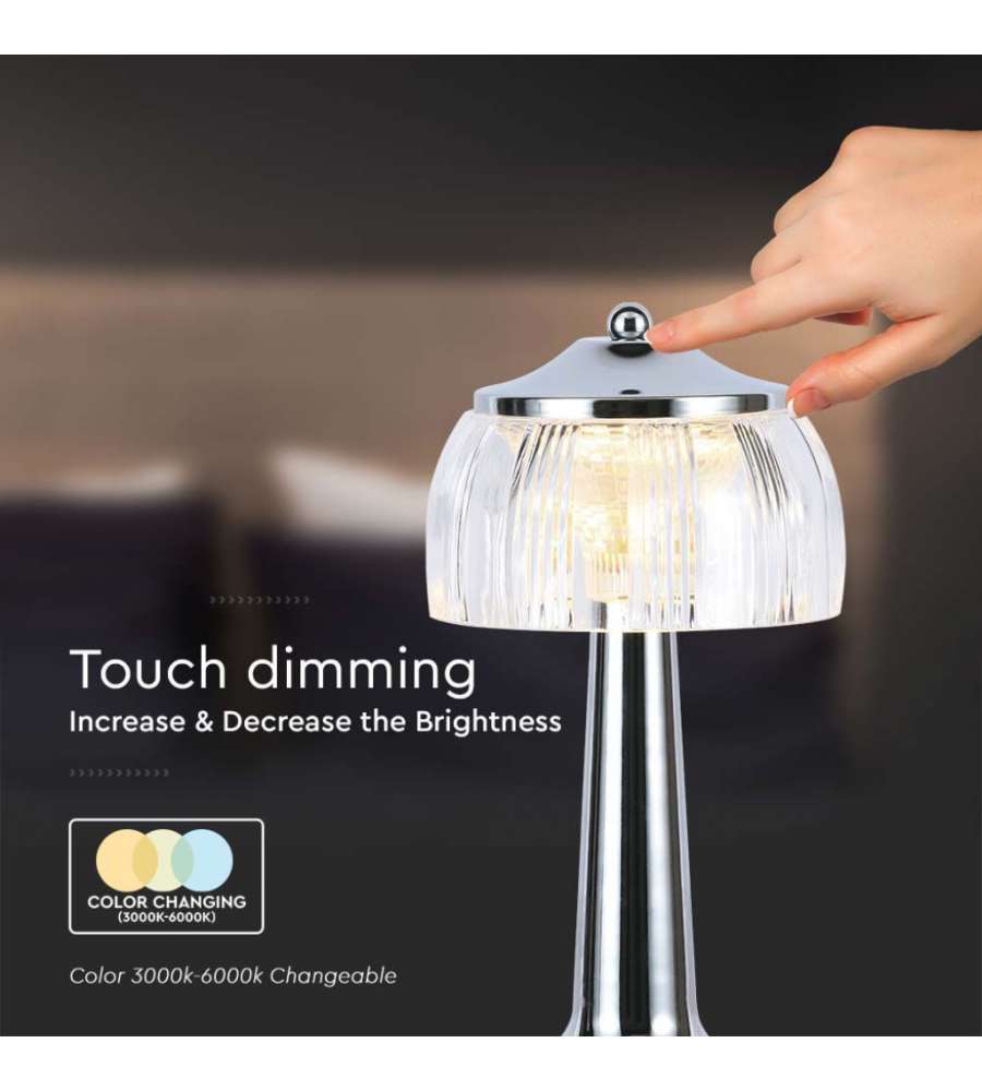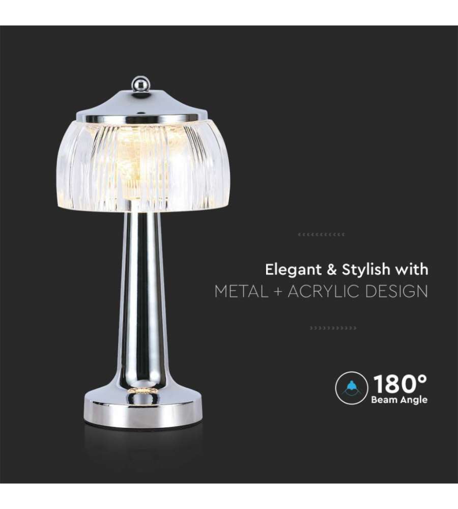 V-TAC Lampade da Tavolo Lampada LED da Tavolo 1W 13.5*26.5 Colore Cromo Ricaricabile con USB C Touch Dimmerabile 3in1Lumen: