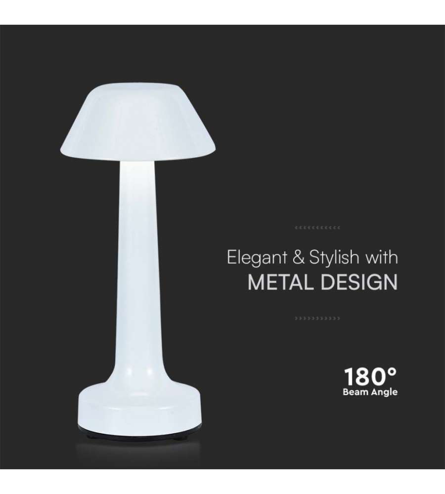 V-TAC Lampade da Tavolo Lampada LED da Tavolo 1W Colore Bianco ricaricabile con USB C Touch Dimmerabile 3in1Lumen: