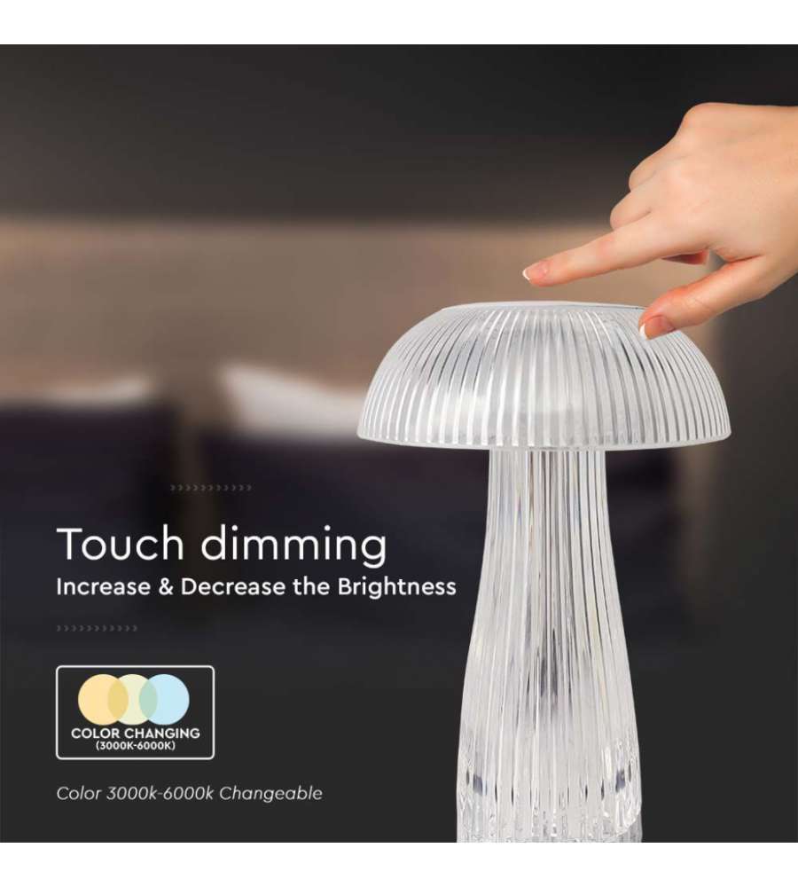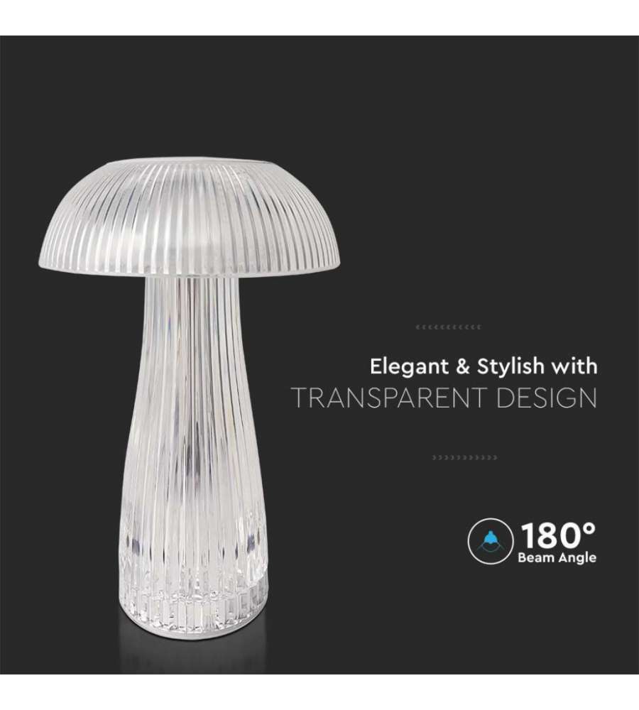 V-TAC Lampade da Tavolo Lampada LED da Tavolo 1W Colore Bianco Trasparente Ricaricabile con USB C Touch Dimmerabile 3in1Lumen: