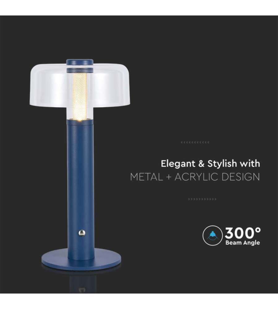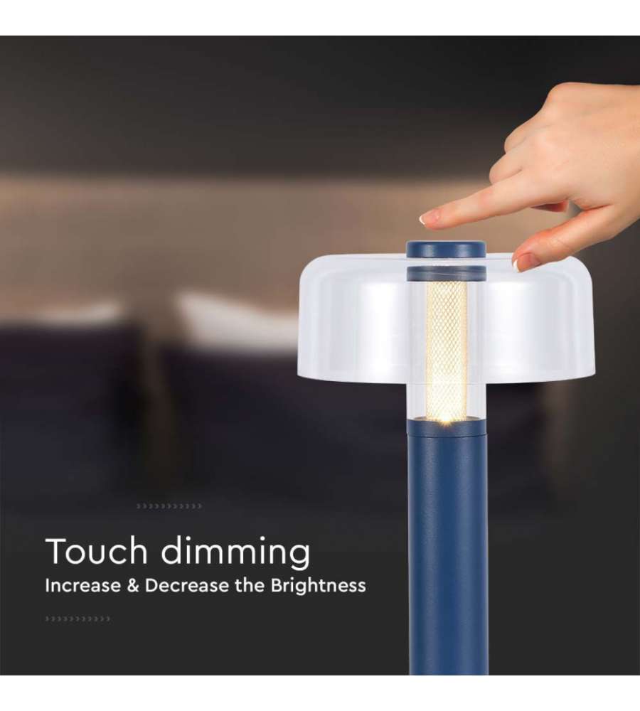 V-TAC Lampade da Tavolo Lampada LED da Tavolo 1W Colore Blu Morandi sabbia e Bianco Trasparente Ricaricabile con USB C Touch Dimmerabile 3000KLumen: