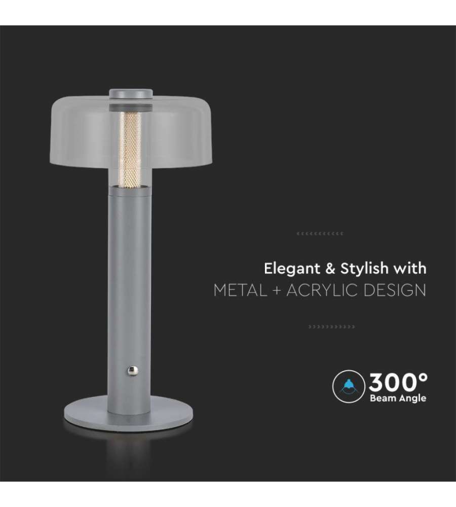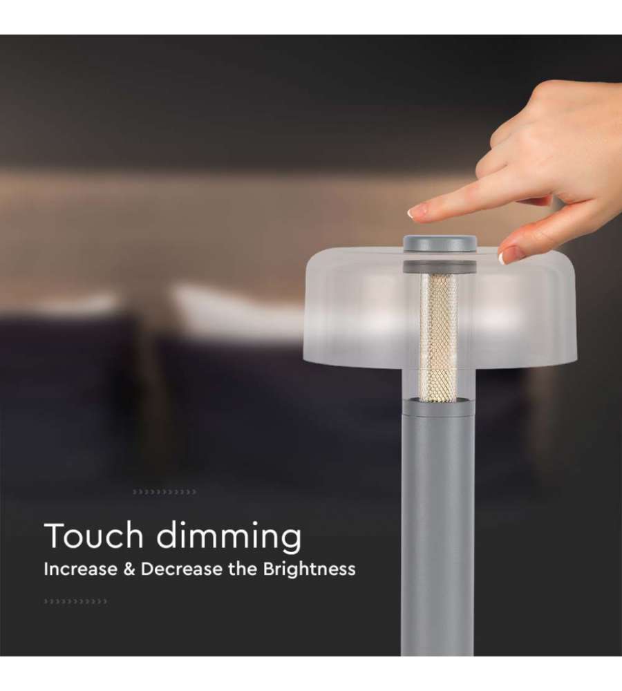 V-TAC Lampada LED da Tavolo 1W Colore Grigio e Bianco Trasparente Ricaricabile con USB C Touch Dimmerabile 3000K