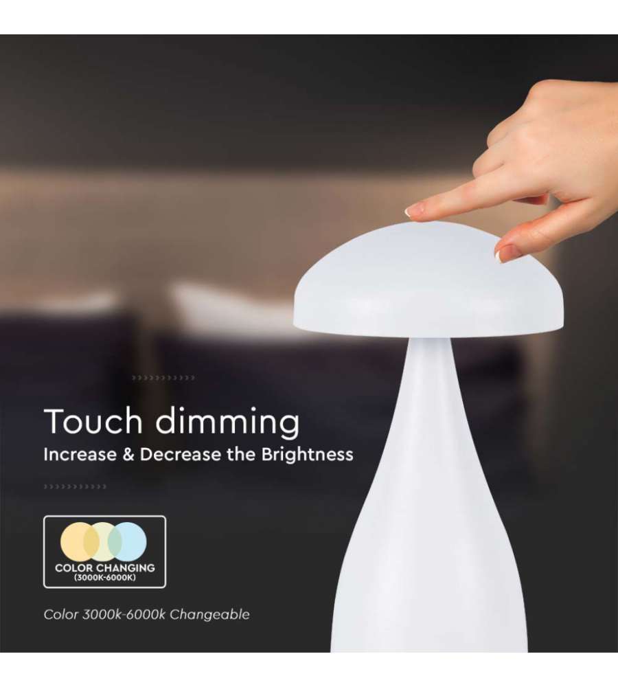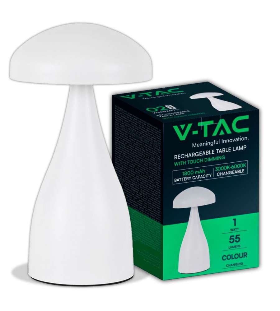 V-TAC Lampade da Tavolo Lampada LED da Tavolo 1W con Batteria 800mAh Ricaricabile USB C Colore Bianco in Metallo Touch Dimmerabile 3in1Lumen: