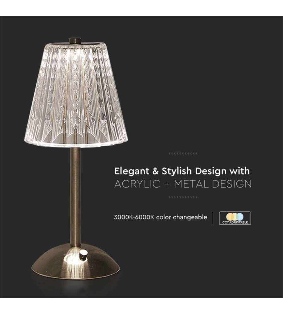 V-TAC Lampade da Tavolo Lampada LED da Tavolo 2.4W 130*295mm Colore Nichel Sabbia Ricaricabile con USB C Touch Dimmerabile 3in1Lumen: