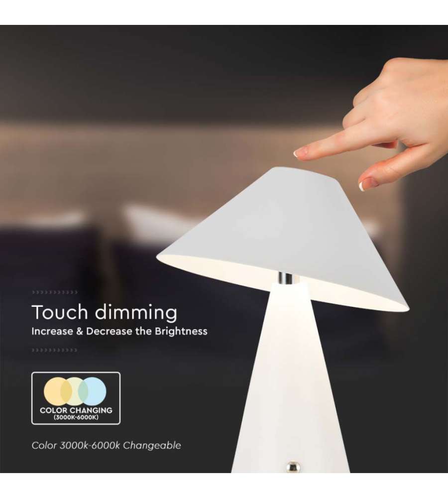 V-TAC Lampade da Tavolo Lampada LED da Tavolo 3W Colore Bianco in Metallo Ricaricabile con USB C Touch Dimmerabile 3in1Lumen: