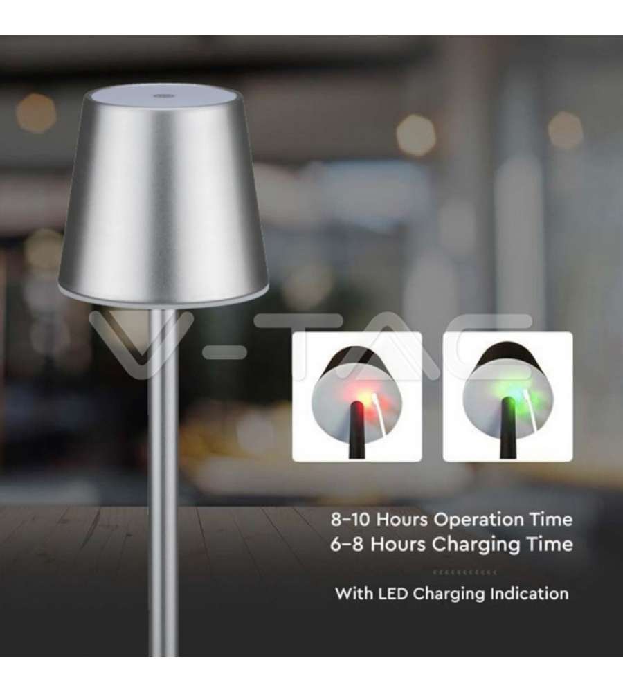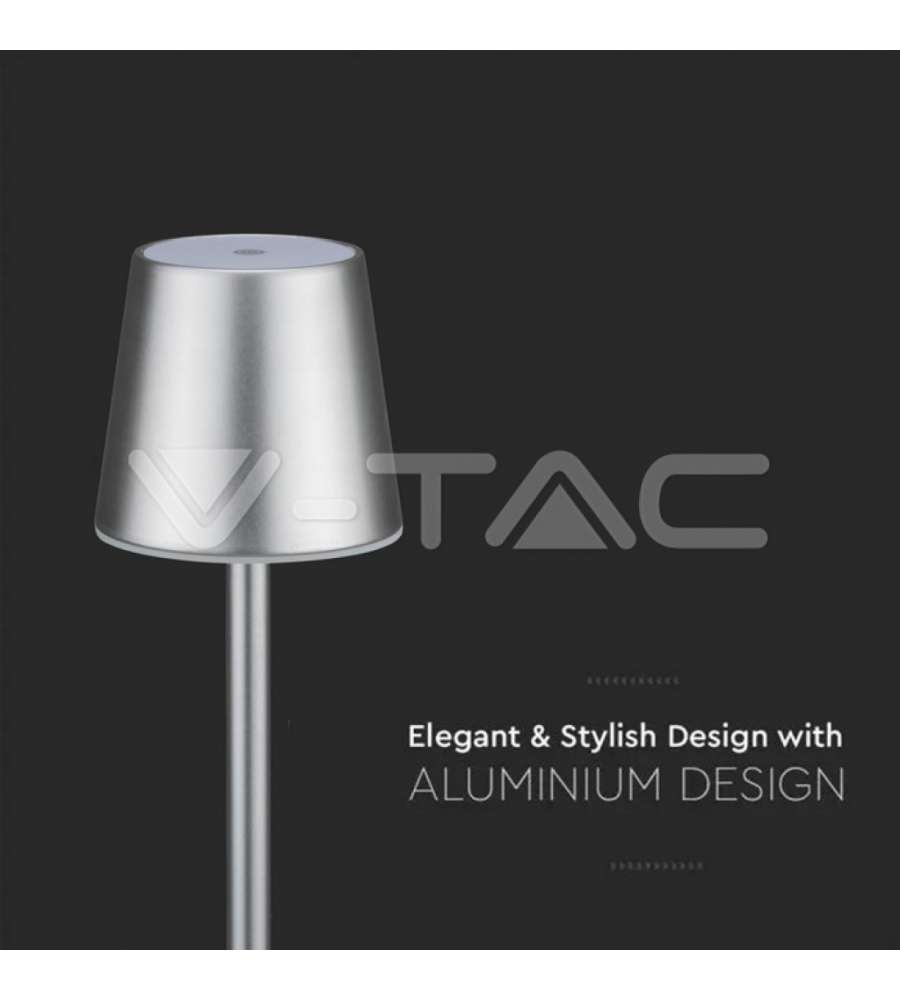 V-TAC Lampade da Tavolo Lampada LED da Tavolo 3W Colore Grigio ricaricabile con Micro-USB Touch Dimmerabile 4000KLumen: