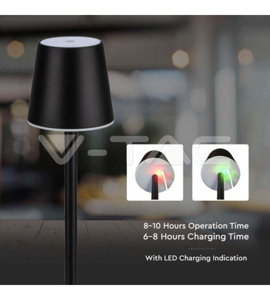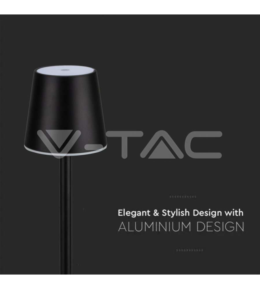 V-TAC Lampada LED da Tavolo 3W Colore Nero ricaricabile con Micro-USB Touch Dimmerabile 4000K