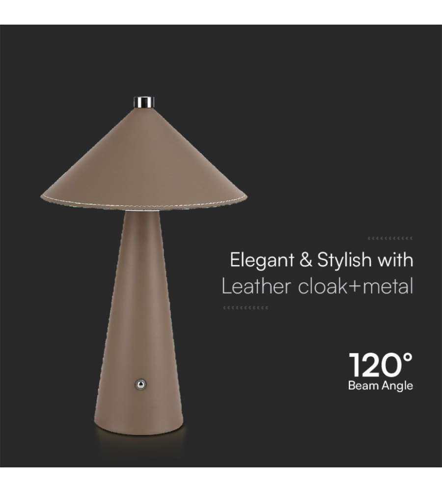 V-TAC Lampada LED da Tavolo 3W con Batteria Ricaricabile USB C Colore Marrone in Metallo Mantello in pelle Touch Dimmerabile 3in1