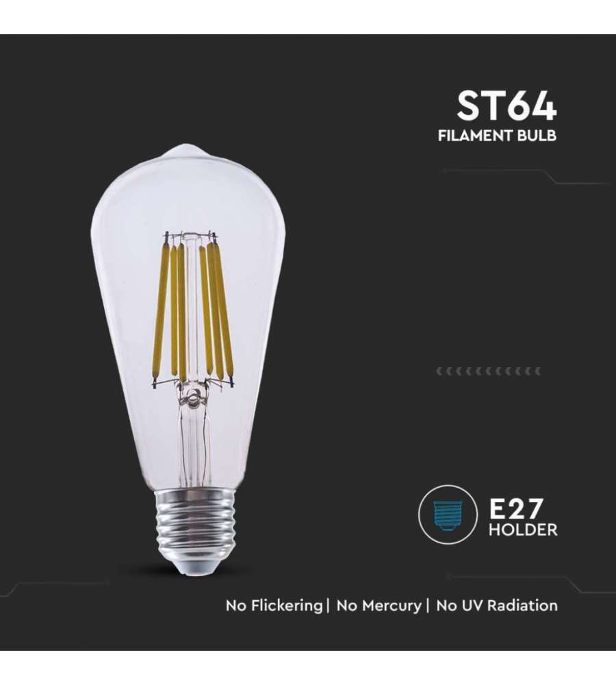 V-TAC Lampadina LED E27 4W ST64 Filamento Colore Trasparente 3000K
