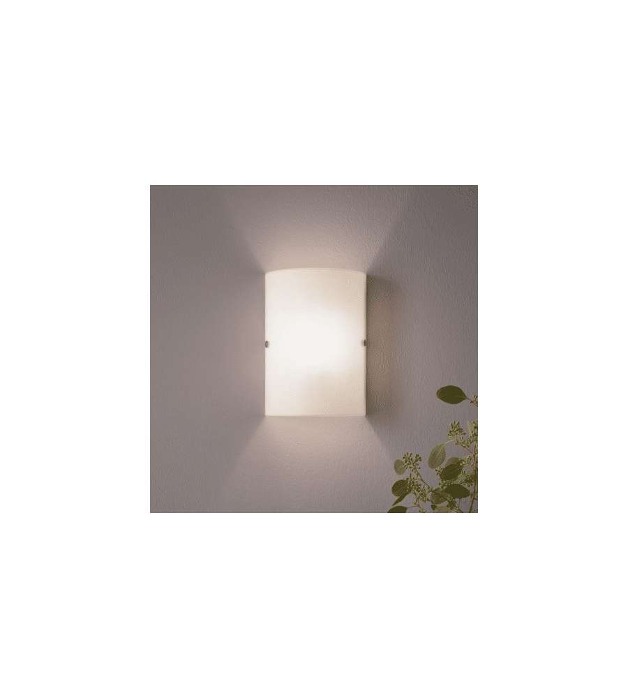 Applique da parete con design sobrio, struttura in acciaio nickel opaco e paralume in vetro satinato bianco. Compatibile con lampadine E14 fino a 60W, dimmerabile. Ideale per soggiorno, cucina, camera da letto. Dimensioni: 18x25x7,5 cm.Garanzia: