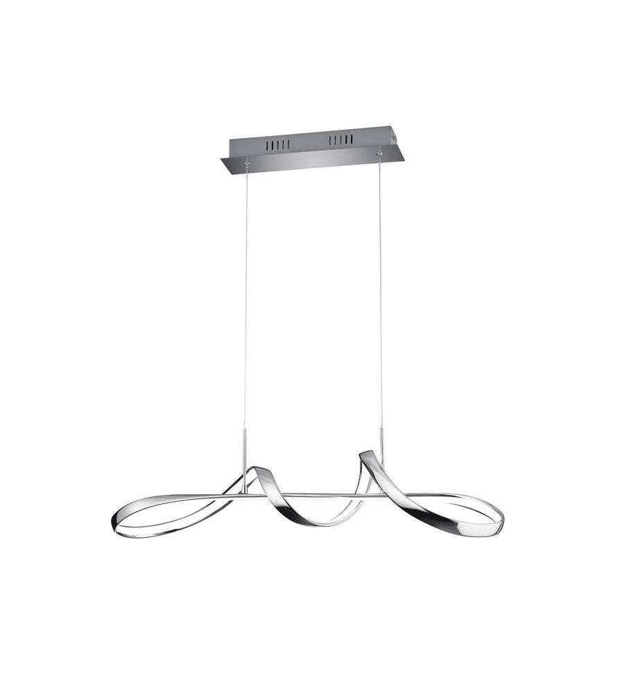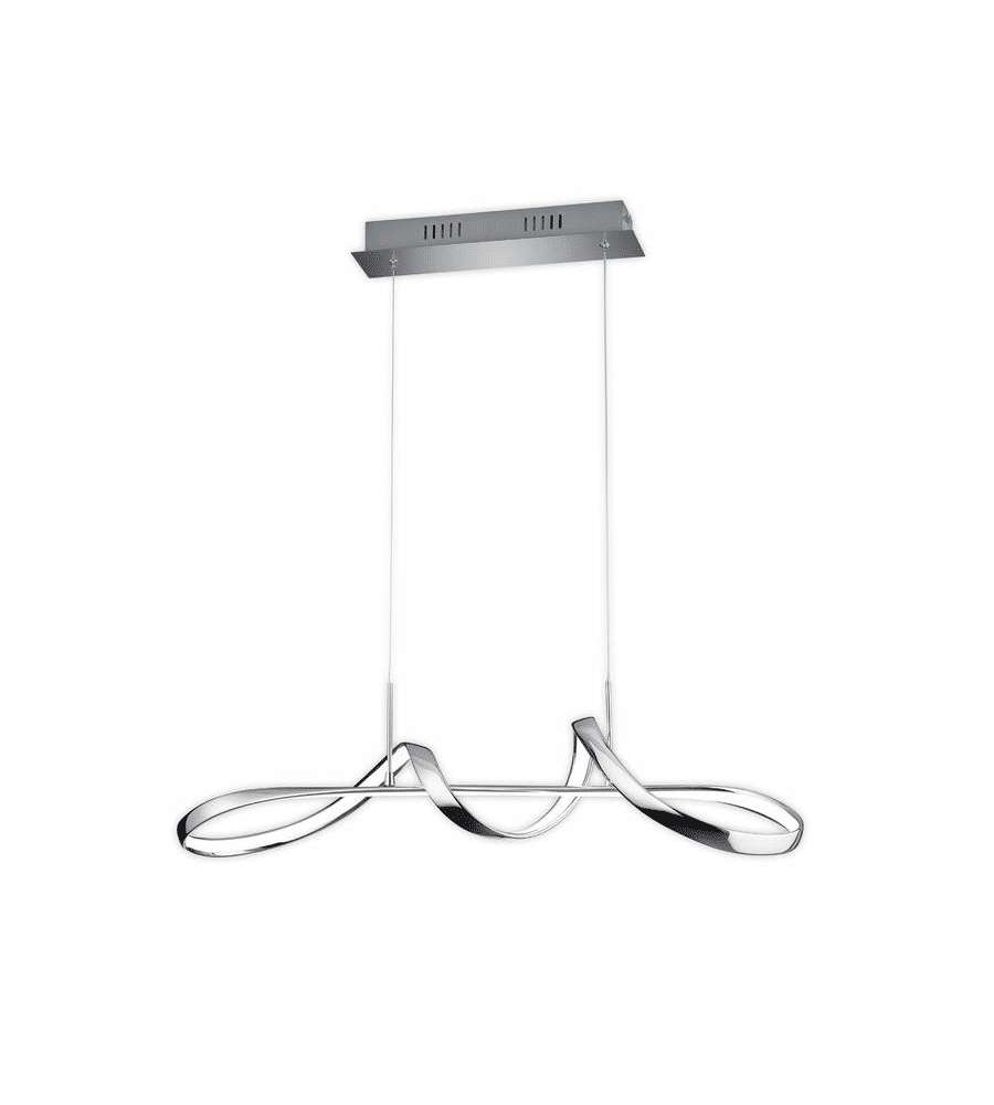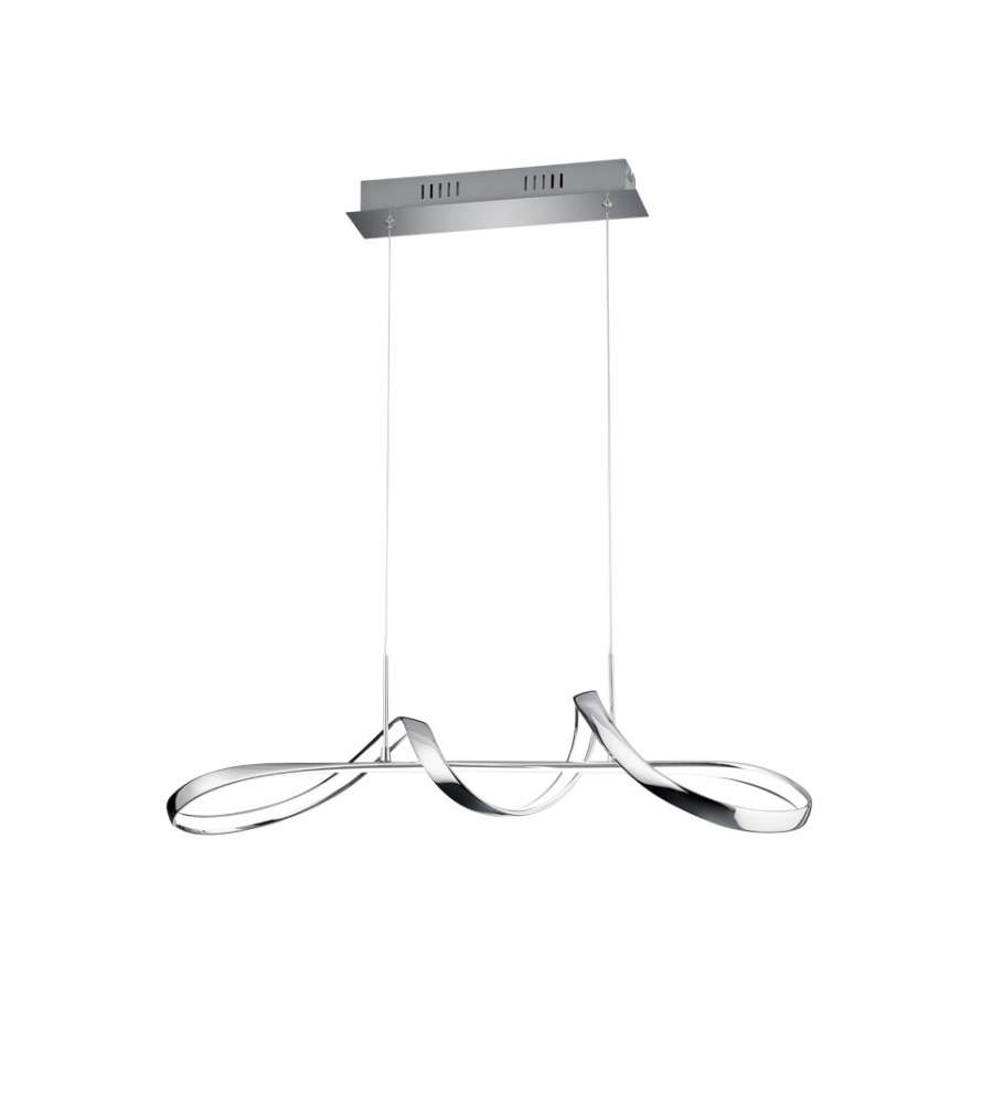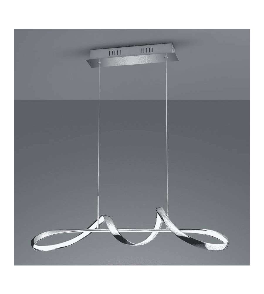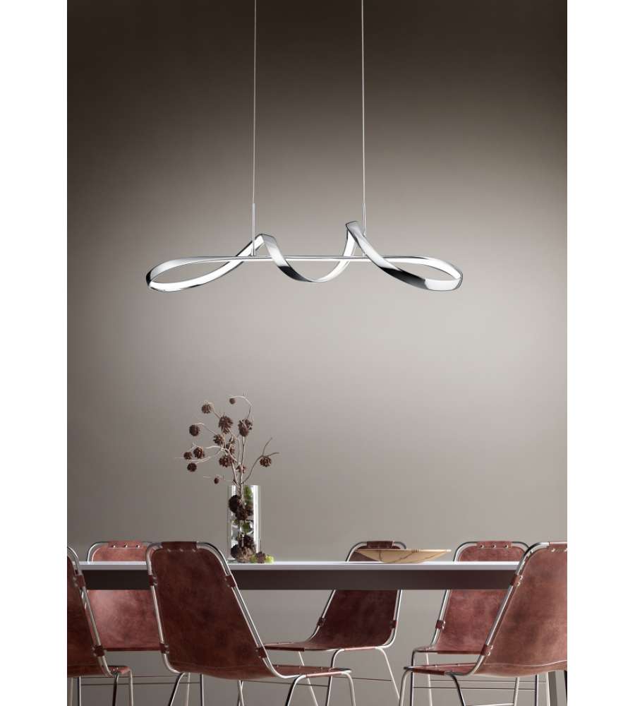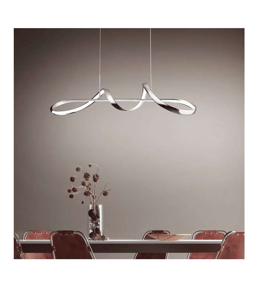 Lampada a sospensione LED in metallo cromato, design curvo elegante. Include dimmer per regolare luminosità a tre livelli (100%-50%-25%). Ideale per soggiorno, sala da pranzo o cucina, altezza variabile per adattamento personalizzato.Garanzia: