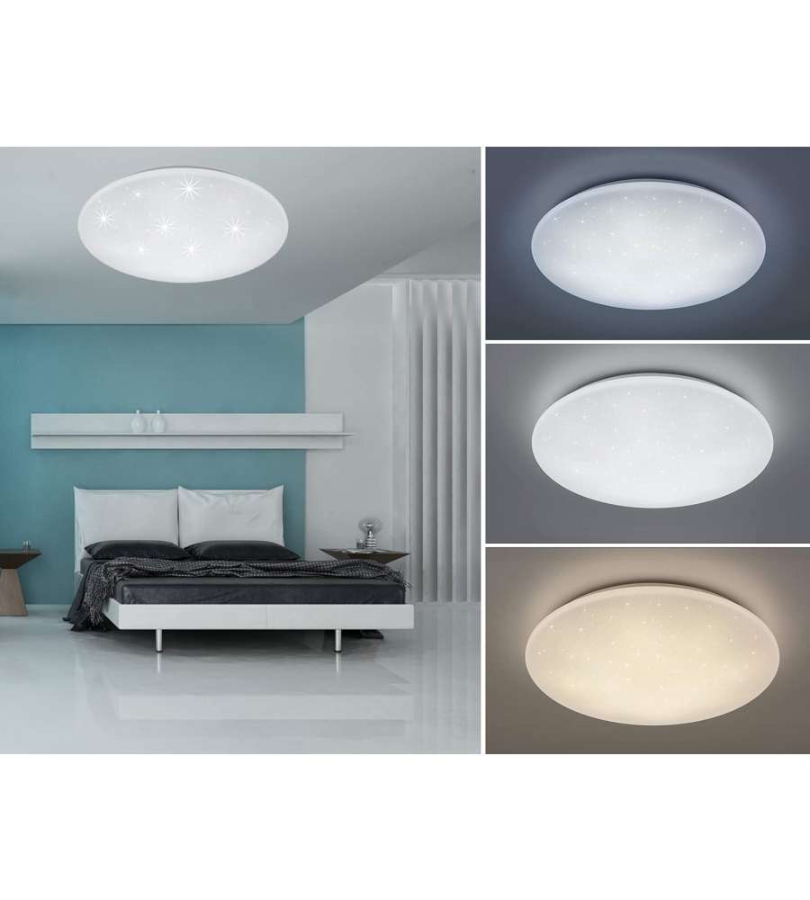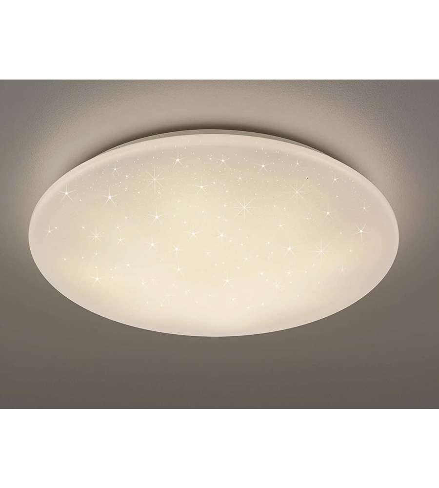 Descrizione: Plafoniera LED Kato di Reality, elegante e minimalista, realizzata in plastica bianca. Luminosità regolabile da 3000K a 5500K, 3060 lumen, telecomando incluso. Ottima per interni!