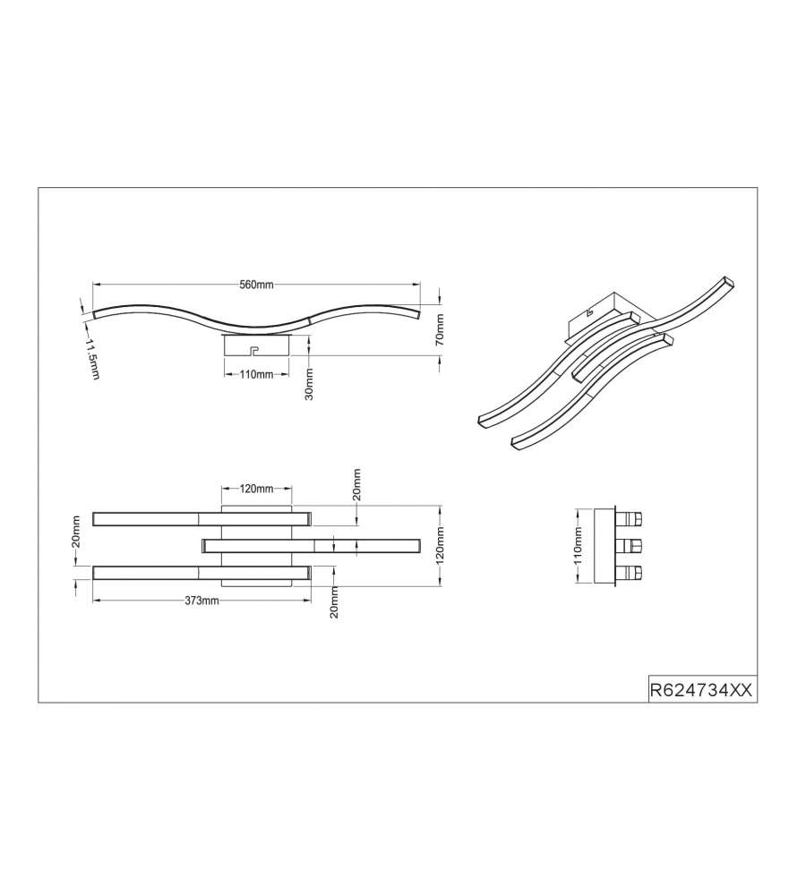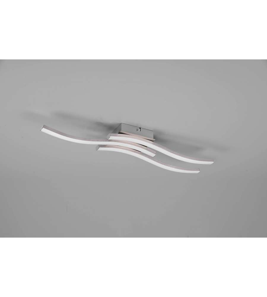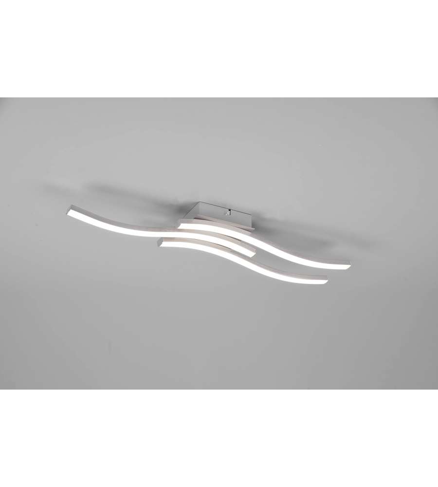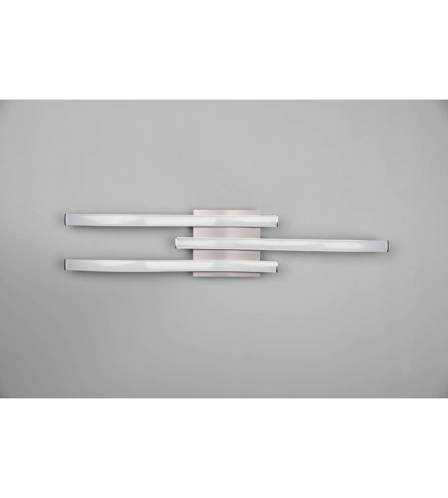 Plafoniera LED da 15W con 3 sorgenti luminose da 600 lumen ciascuna, temperatura colore 4000K. Design moderno in metallo nickel opaco, montaggio a soffitto, ideale per soggiorni e camere. Dimensioni: 56x12x7 cm.Consumo: