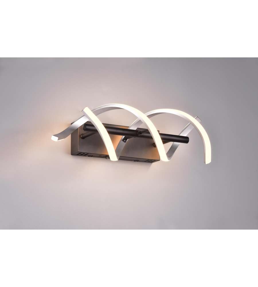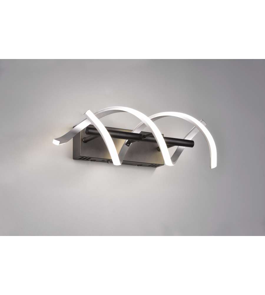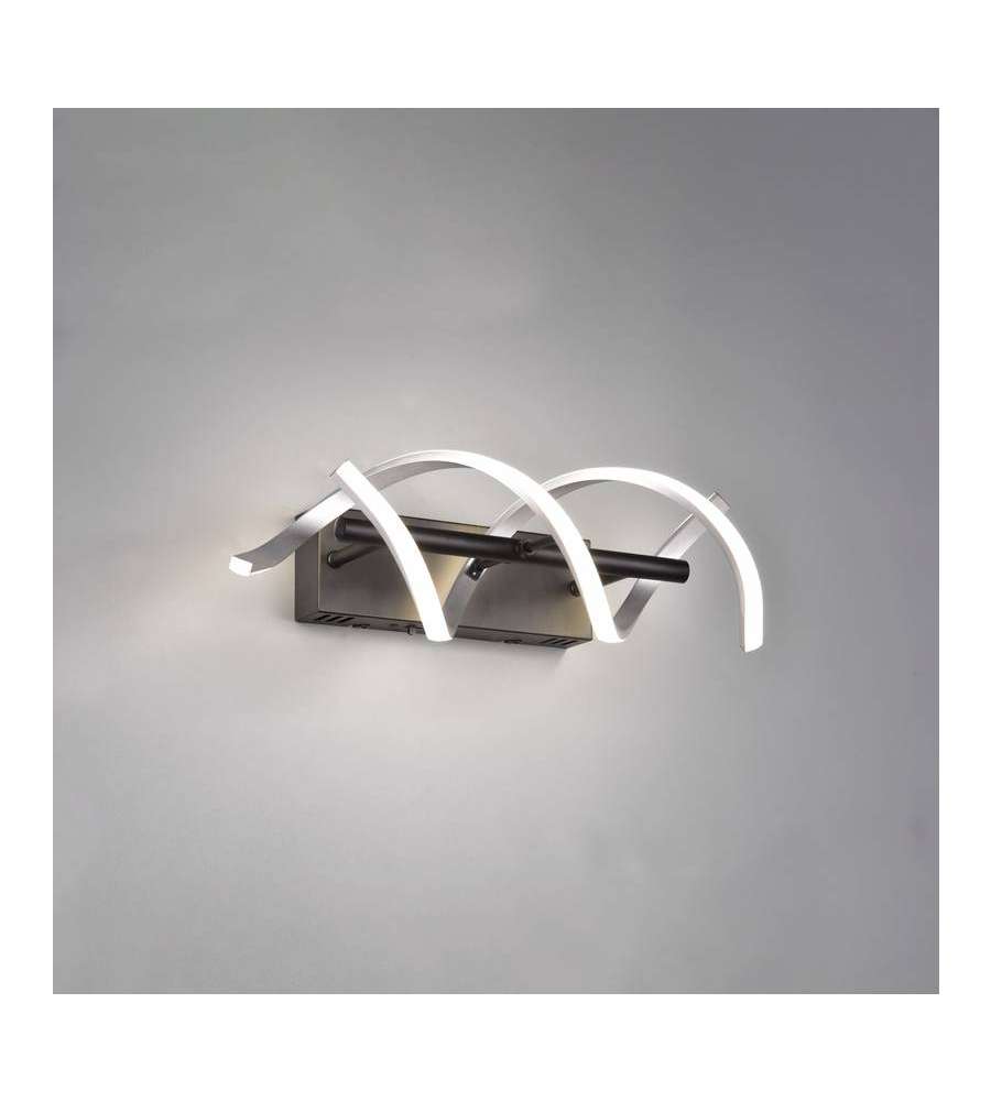 Applique LED moderna con design in alluminio spazzolato, dimmerabile in 3 fasi (100%/50%/25%). Regolazione CCT per luce calda (2300K/3000K) e neutra (4000K). Flusso luminoso di 2800 lm, dimensioni 47x13,5x20,5 cm, IP20, 22W.Tipo attacco: