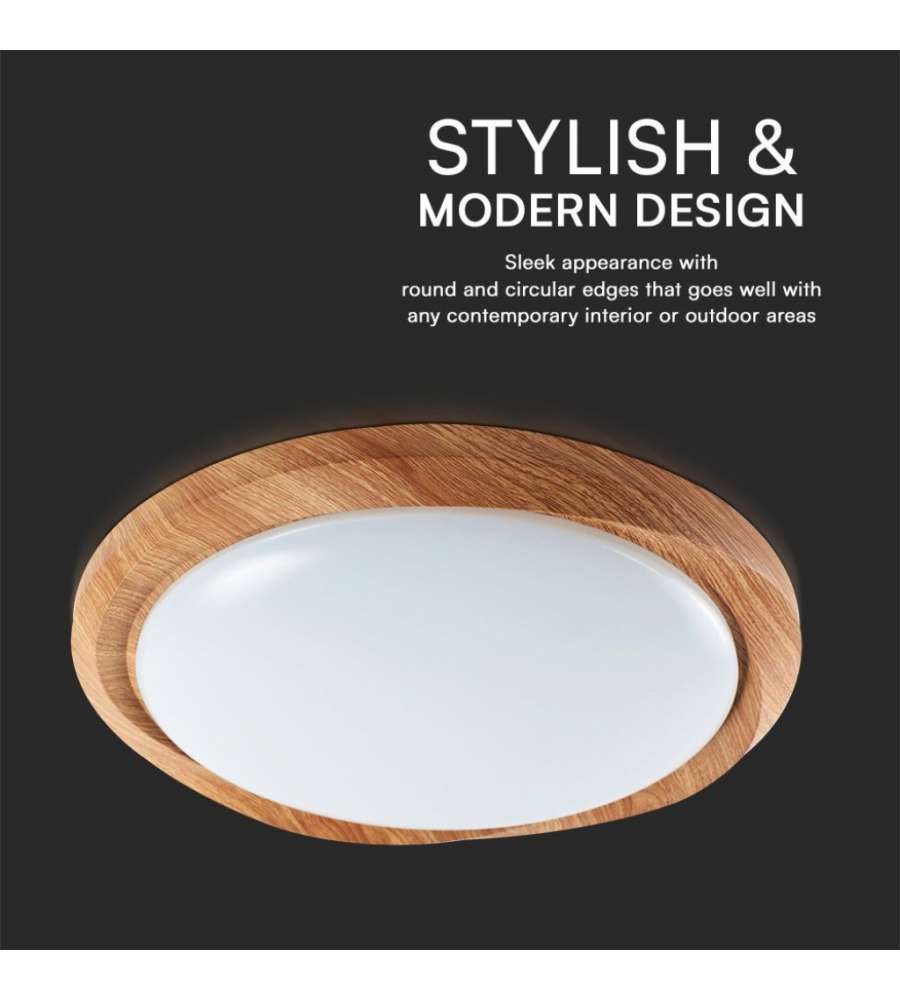 V-TAC Plafoniere Plafoniera LED 60W Rotonda con Telecomando controllo Remoto CCT 3in1 D492mm Dimmerabile 3000-6500K Cover LegnoLumen: