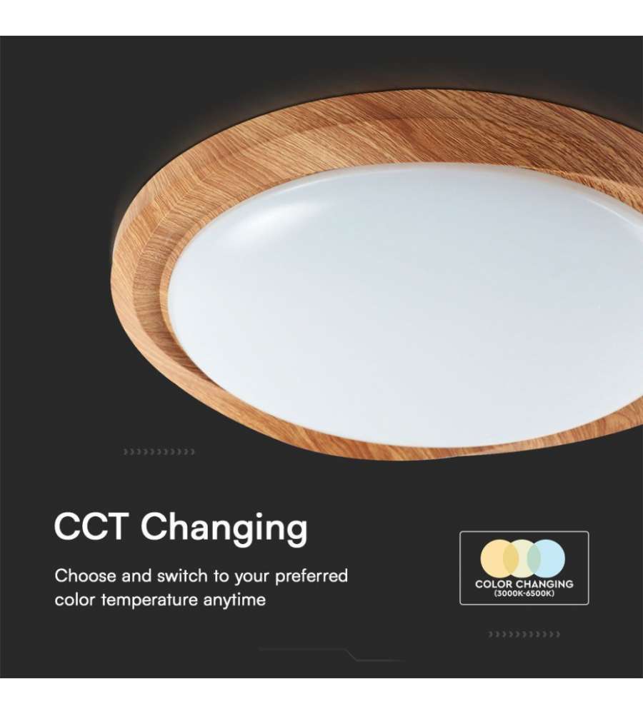 V-TAC Plafoniera LED 60W Rotonda con Telecomando controllo Remoto CCT 3in1 D492mm Dimmerabile 3000-6500K Cover Legno