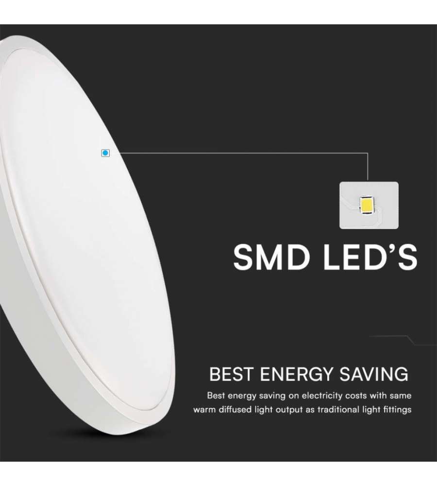 V-TAC Plafoniera LED Chip Samsung Rotonda 24W 100LM/W ?295mm 3000K IP44