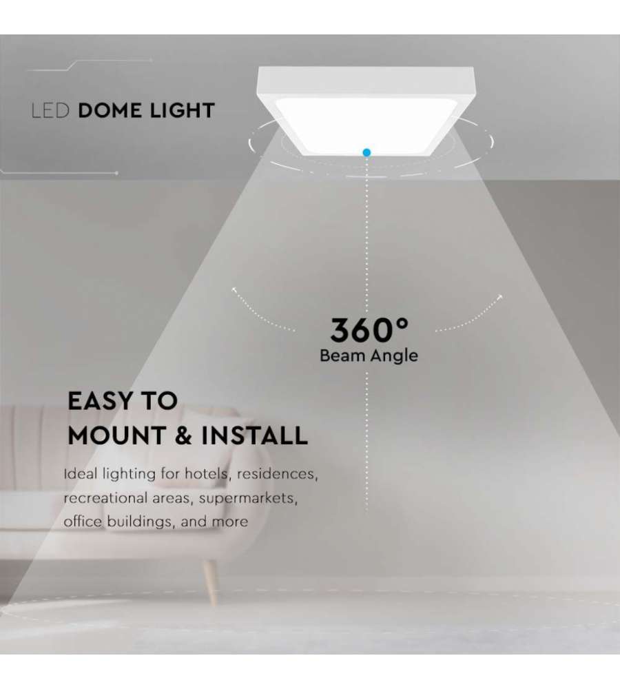 V-TAC Plafoniera LED Quadrata 30W Colore Bianco 6500K IP44