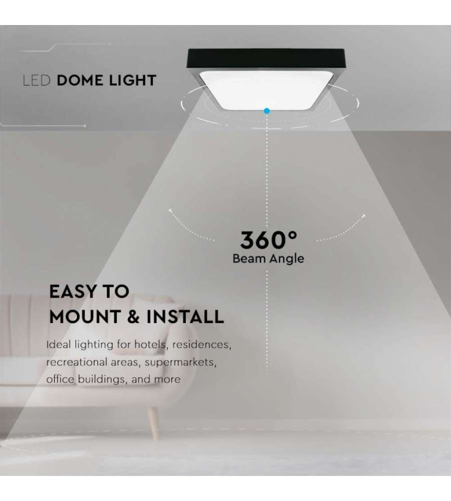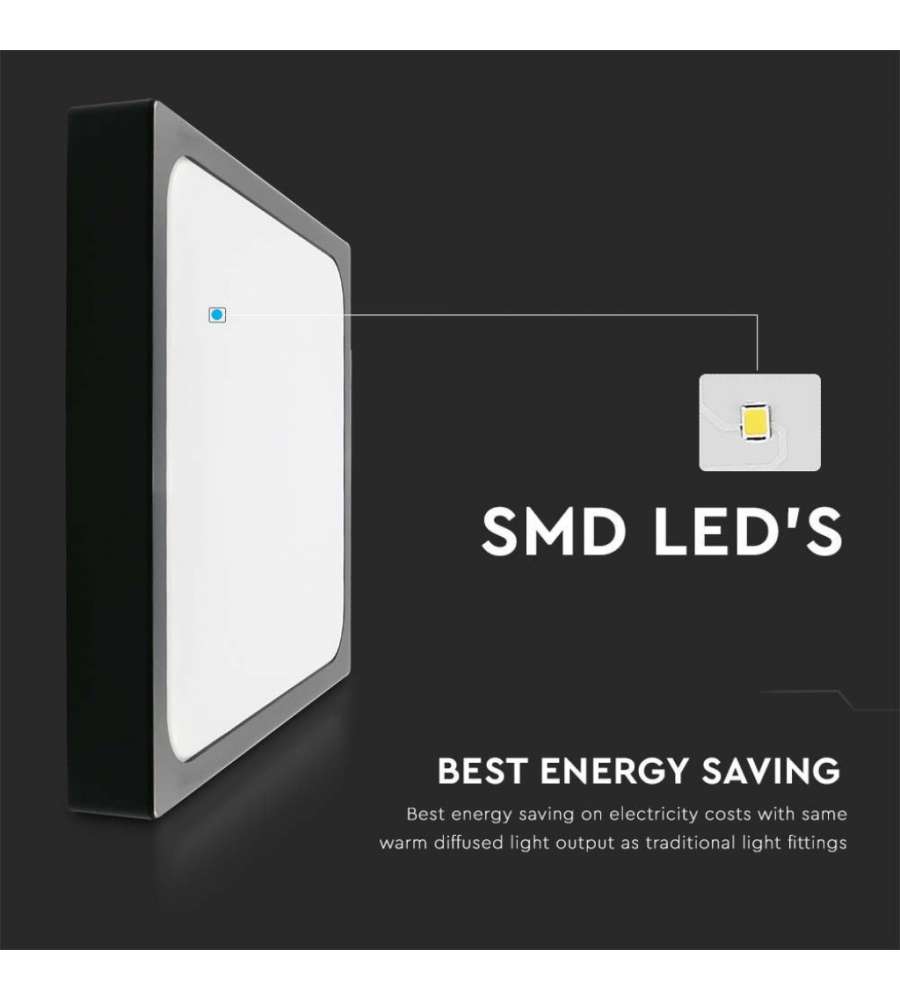 V-TAC Plafoniera LED Quadrata 30W Colore Nero 6500K IP44