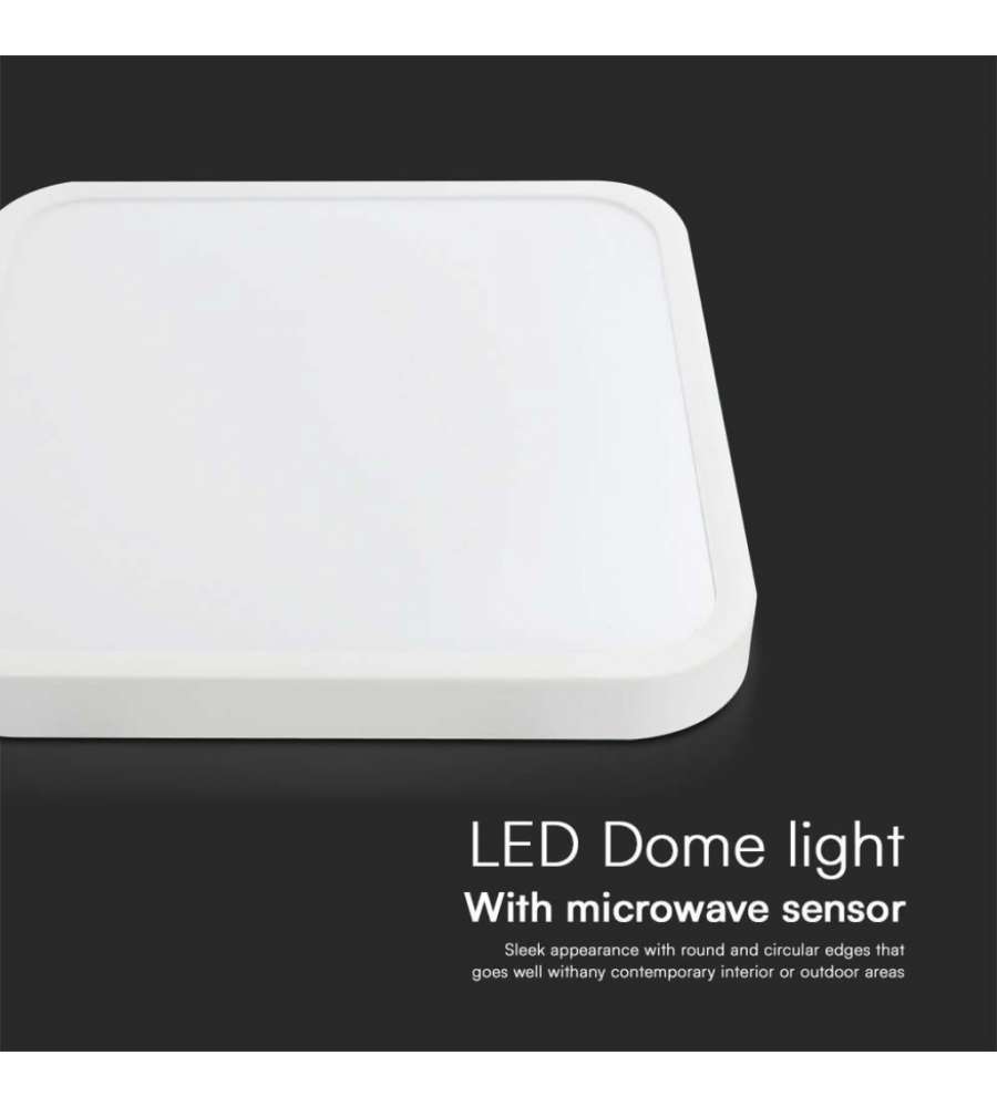 V-TAC Plafoniere Plafoniera LED Quadrata 36W con Telecomando e Sensore di Movimento a Microonde Colore Bianco 4000K IP44Lumen: