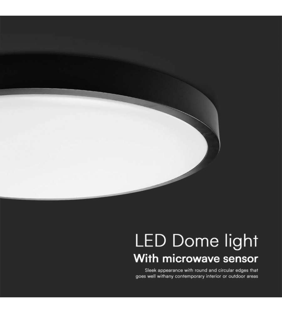 V-TAC Plafoniere Plafoniera LED Rotonda 18W con Telecomando e Sensore di Movimento a Microonde Colore Nero 4000K IP44Lumen: