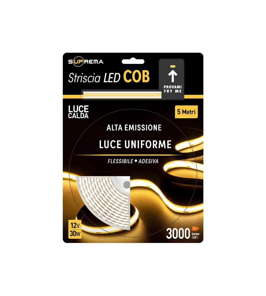 Descrizione: Illumina ogni ambiente con il kit striscia LED 5M Suprema, 30W e 3000lm. Luce calda a 3000K con 1600 LED, ideale per interni. Facile da installare, flessibile e personalizzabile.