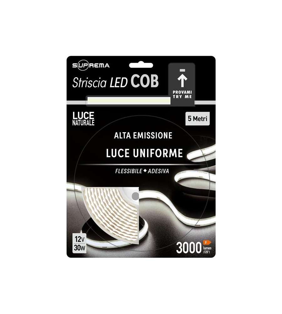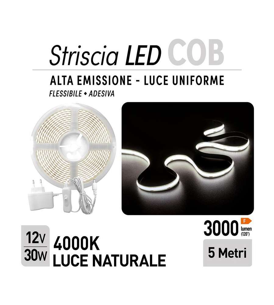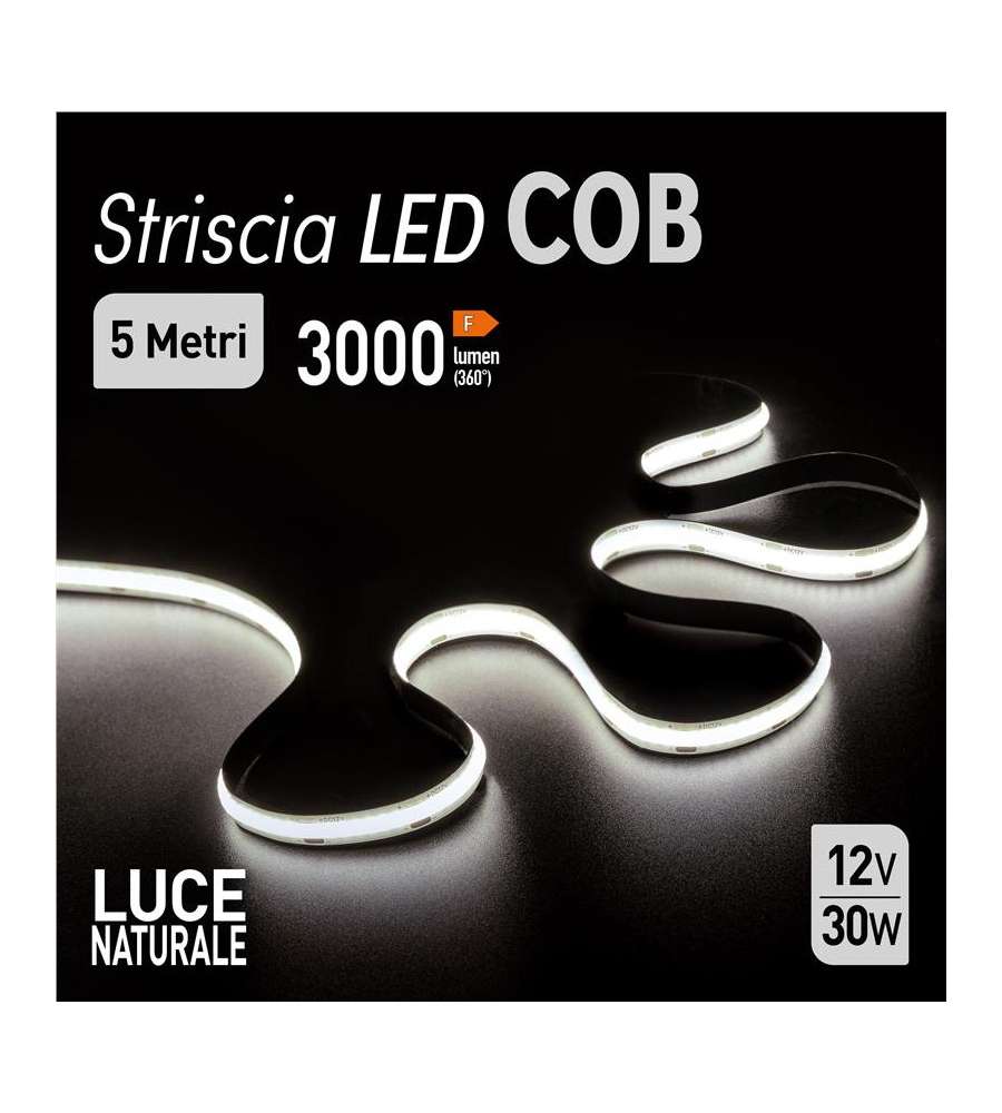 Striscia LED 5 metri, potenza 30W, 3000 lumen, temperatura colore 4000K. Ideale per illuminazione decorativa e funzionale. Facile da installare, flessibile e adatta a diverse applicazioni domestiche e commerciali.Consumo: