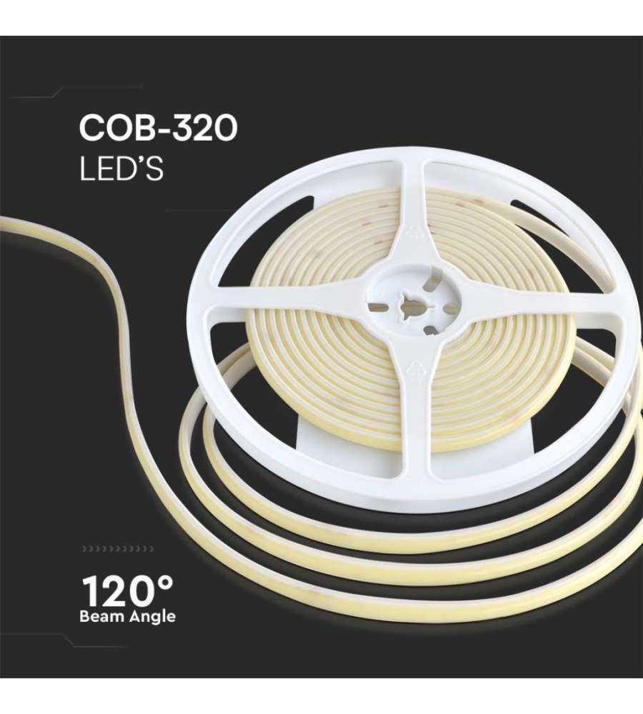 V-TAC Strip LED Strip LED COB-320 10W/m 5m 24V 1000Lm/m Colore Verde 6000K IP67 8mmTipo luce:
