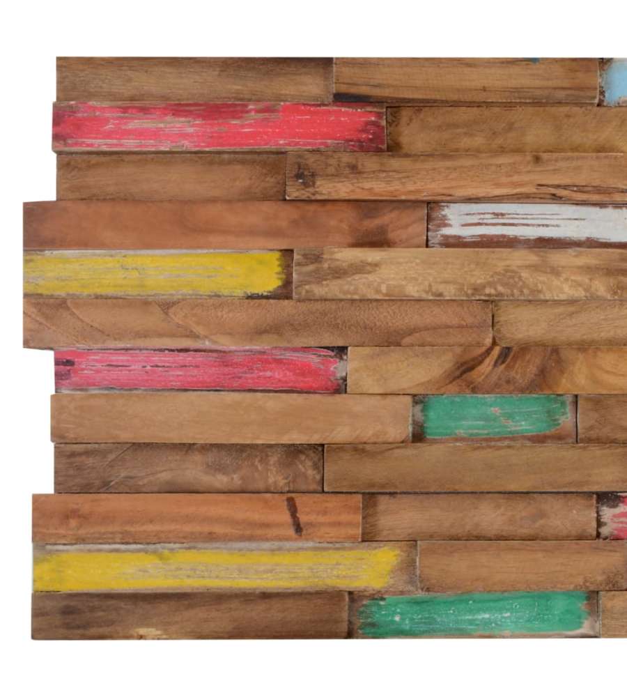 Il rivestimento ? realizzato in legno massello di teak che ? parzialmente colorato in armonia con l'aspetto naturale di tendenza, che si aggiunge al suo aspetto rustico simile a una pila di assi. Questi bellissimi pannelli decorativi da parete sono molto facili da installare.