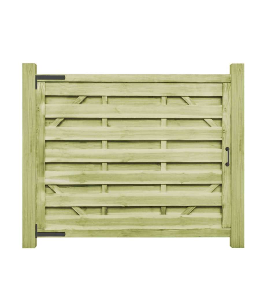 Questi cancelli per giardino durevoli sono realizzati in legno di pino robusto, rispettoso dell'ambiente. Il legno di pino impregnato ? robusto e resistente agli agenti atmosferici e alla putrefazione. Composti da listelli verticali e traversi diagonali, i cancelli sono robusti, stabili e durevoli. Questo set di cancelli ? facile da assemblare con le viti incluse.