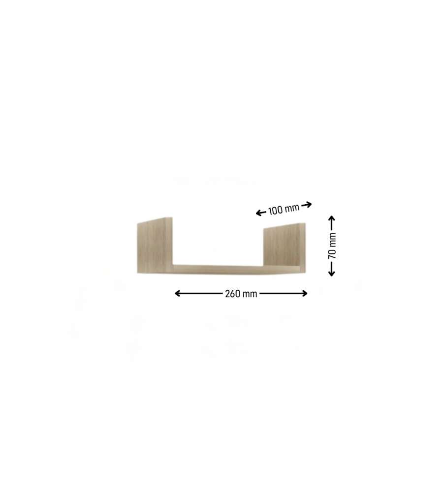 Descrizione: Scopri il Set di 3 Mensole a U in PVC Rovere Sonoma di Kimono, eleganti e robuste. Tre dimensioni differenti: 420x100 mm, 340x85 mm, 260x70 mm, tutte con la stessa profondità di 100 mm per un gioco di equilibrio, misure e design.