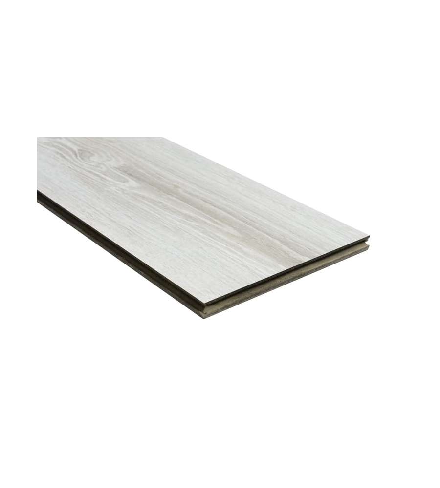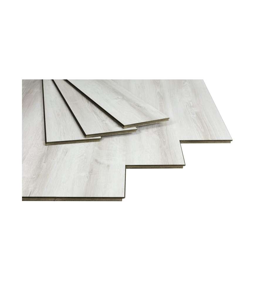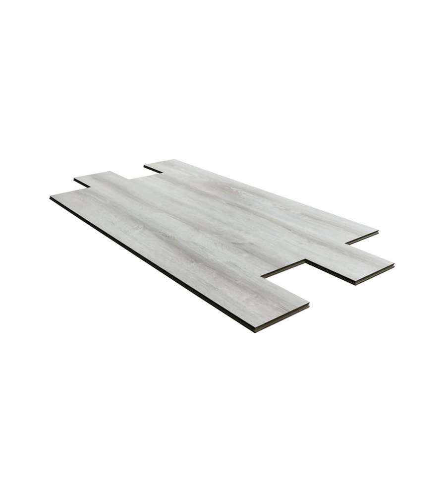 Pavimento laminato SPC in rovere sbiancato, misure 122x18,4x0,5 cm. Include tappetino integrato per comfort e isolamento. Facile e rapido da montare, ideale per ambienti moderni. Copertura totale di 2,25 mq per confezione da 10 listoni.Uso interno: